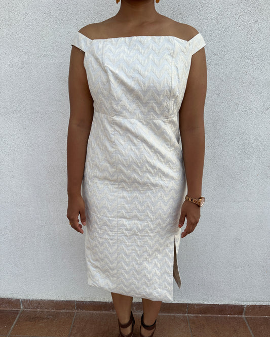 White and blue off shoulder midi dressRegular price Rs. 630.00Regular priceUnit price / per-