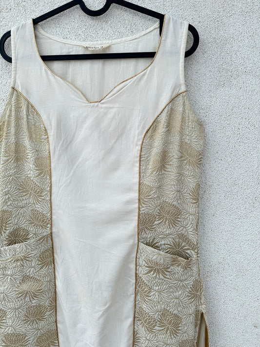 Yellow and grey embroidered cotton kurta and shawl ( 2 pcs)