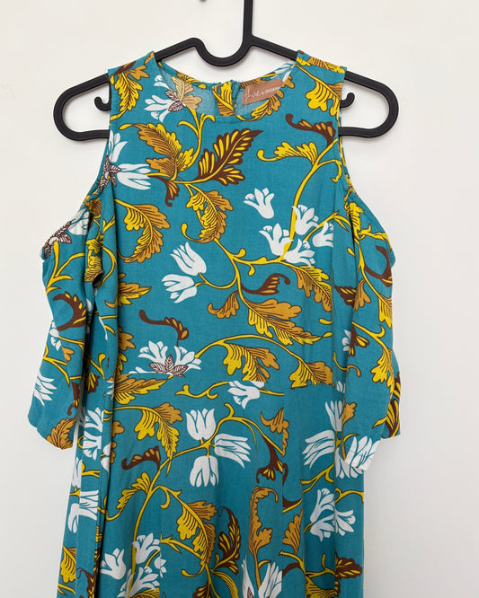 Blue kurta with yellow botanical print