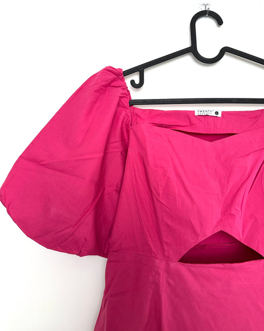 Pink Puff sleeves midi dress with cut-out