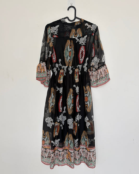 Black printed sheer tunic