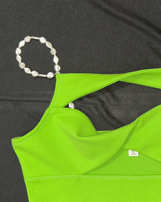 Green crop top with pearl straps