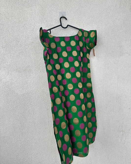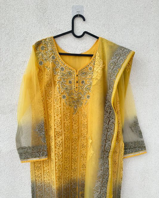 Yellow and grey embroidered cotton kurta and shawl ( 2 pcs)