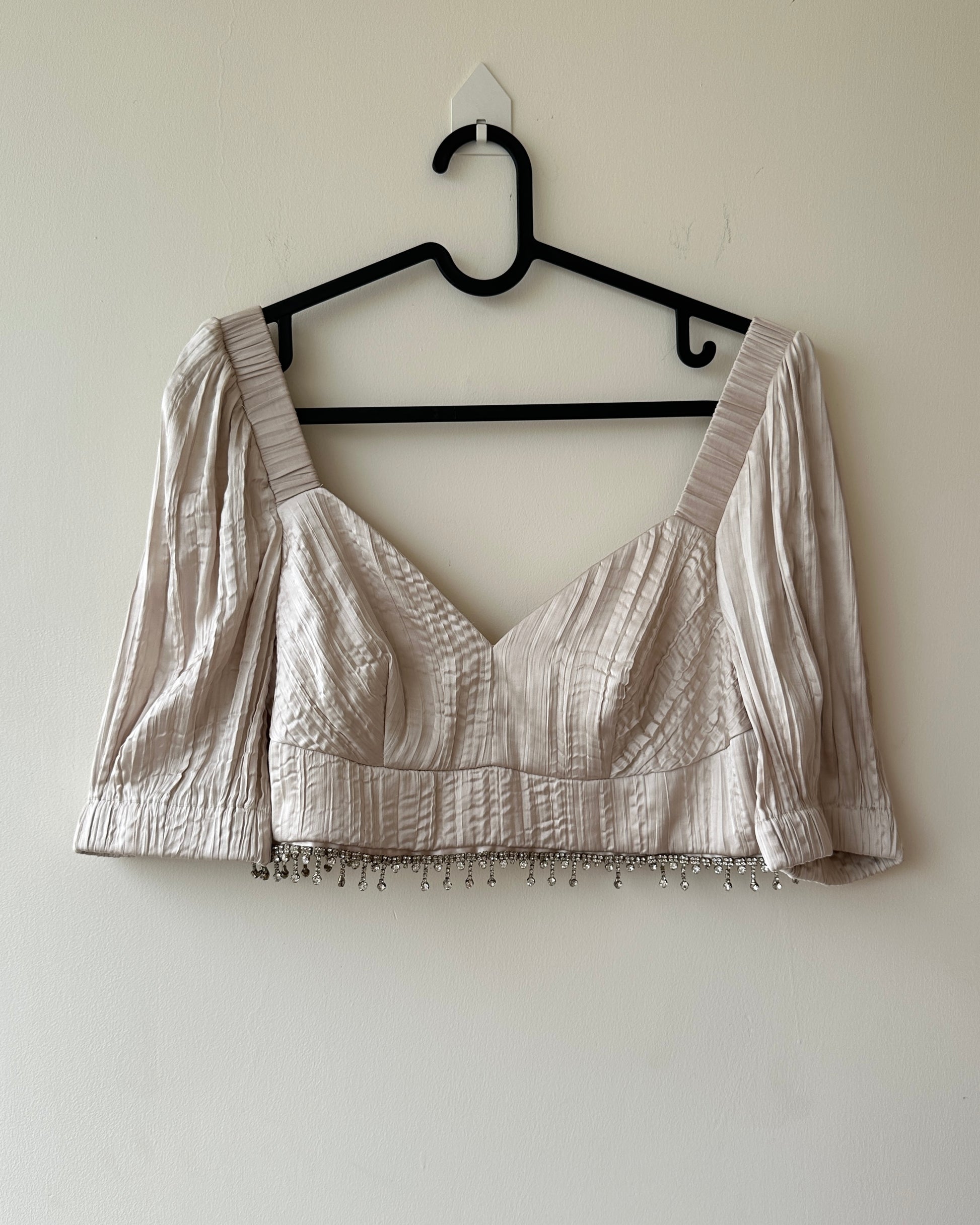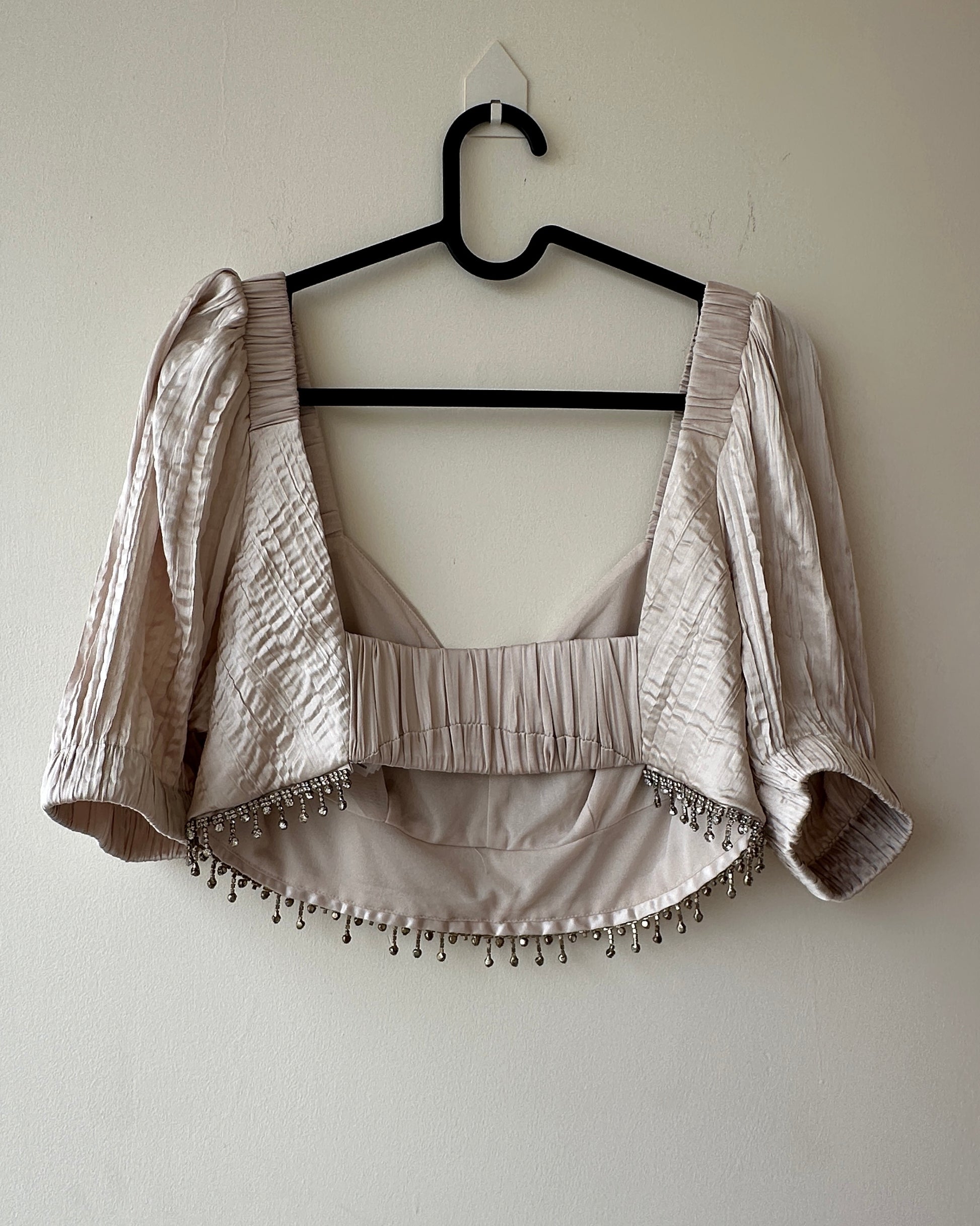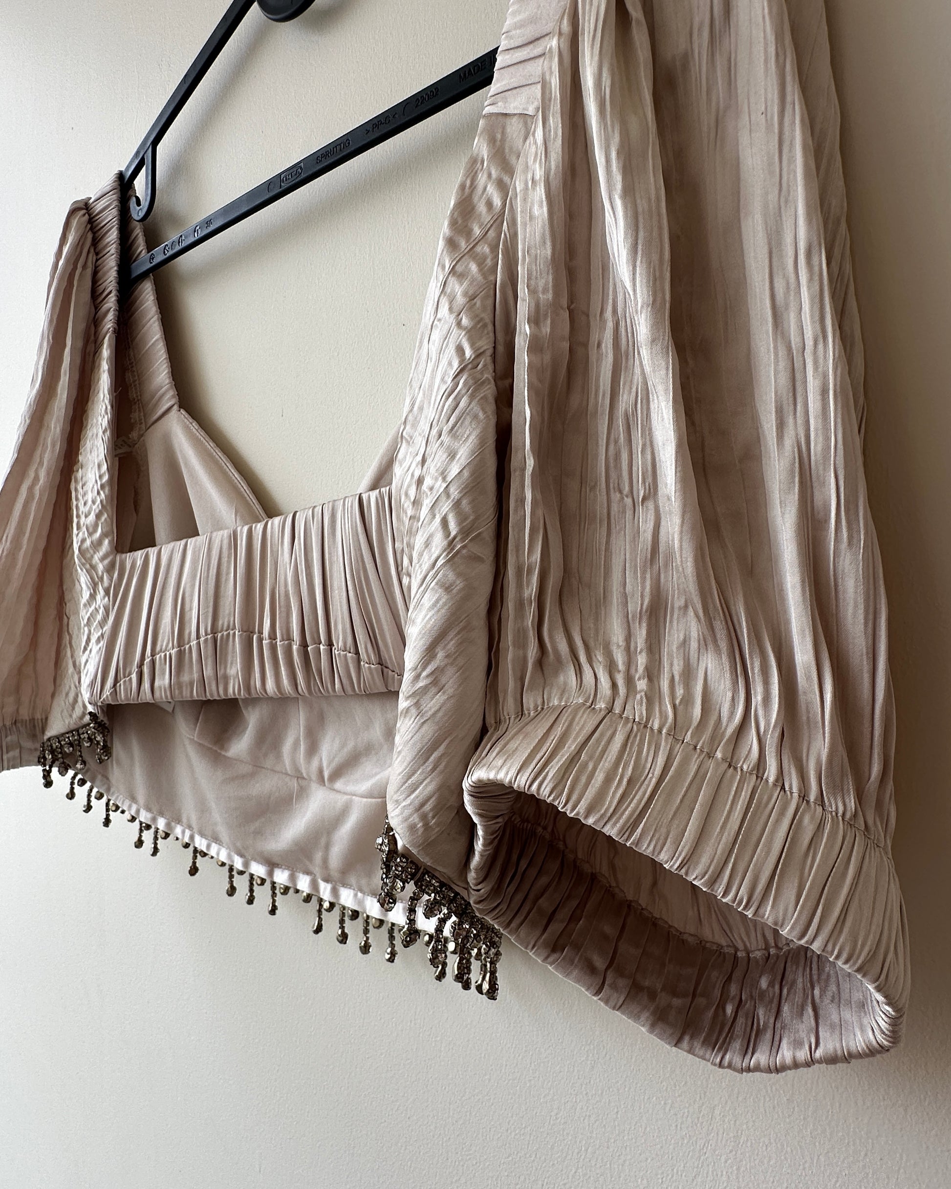 Beige satin crop top with stones