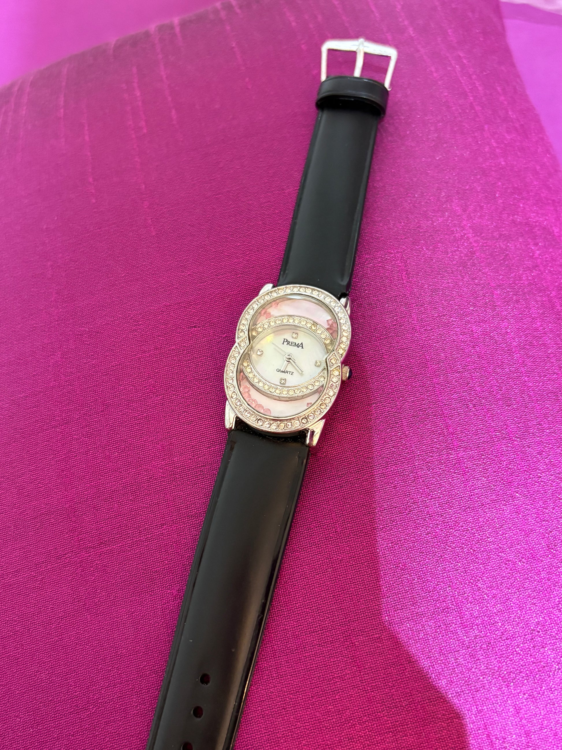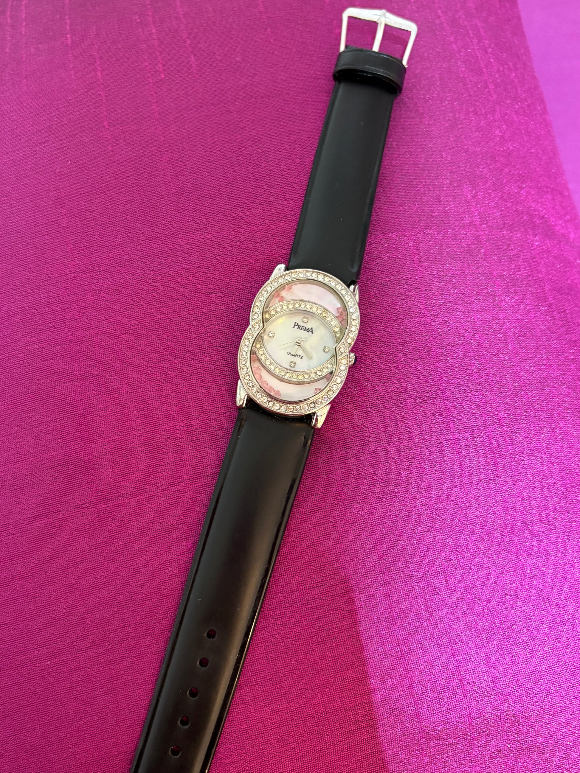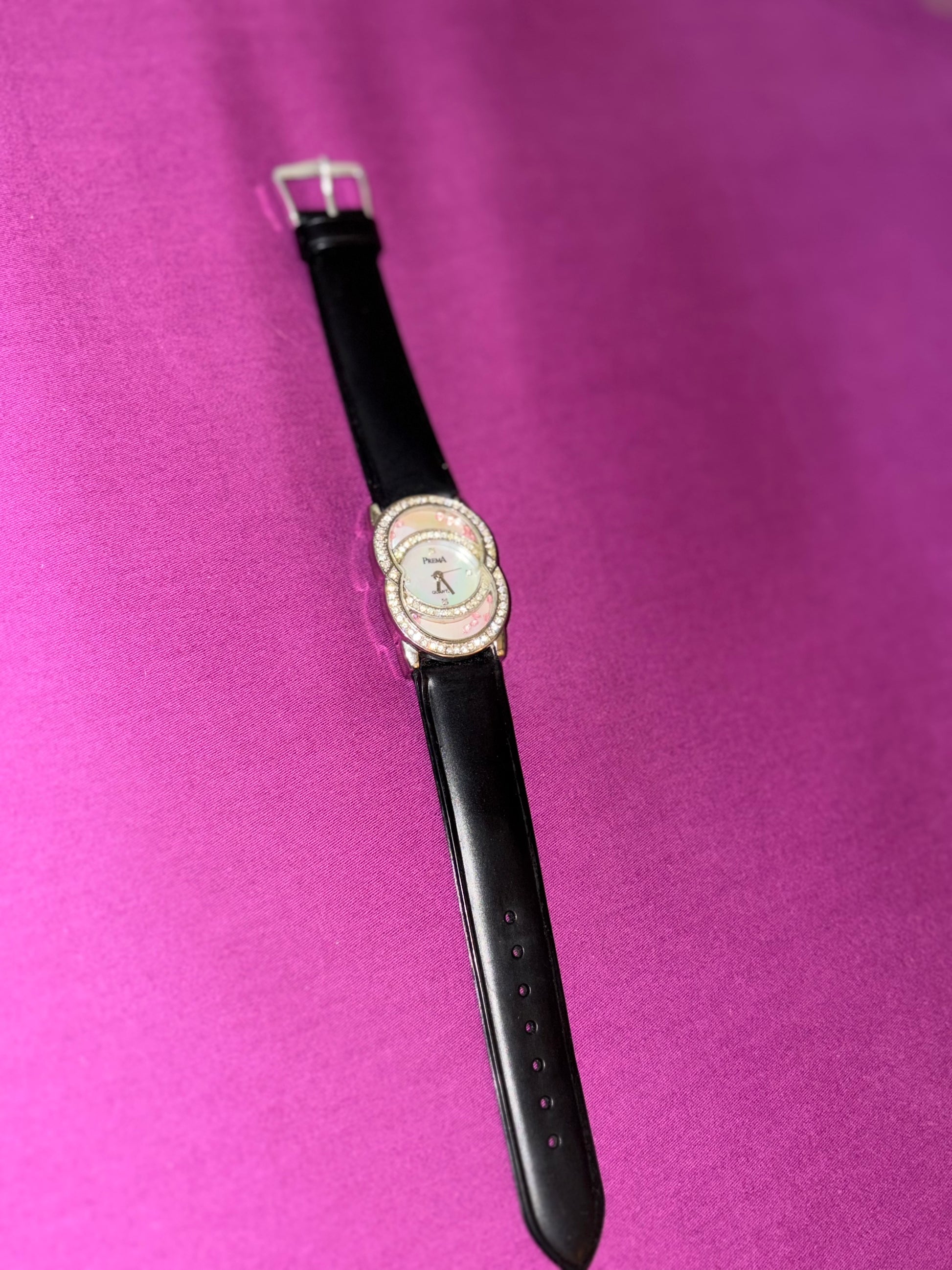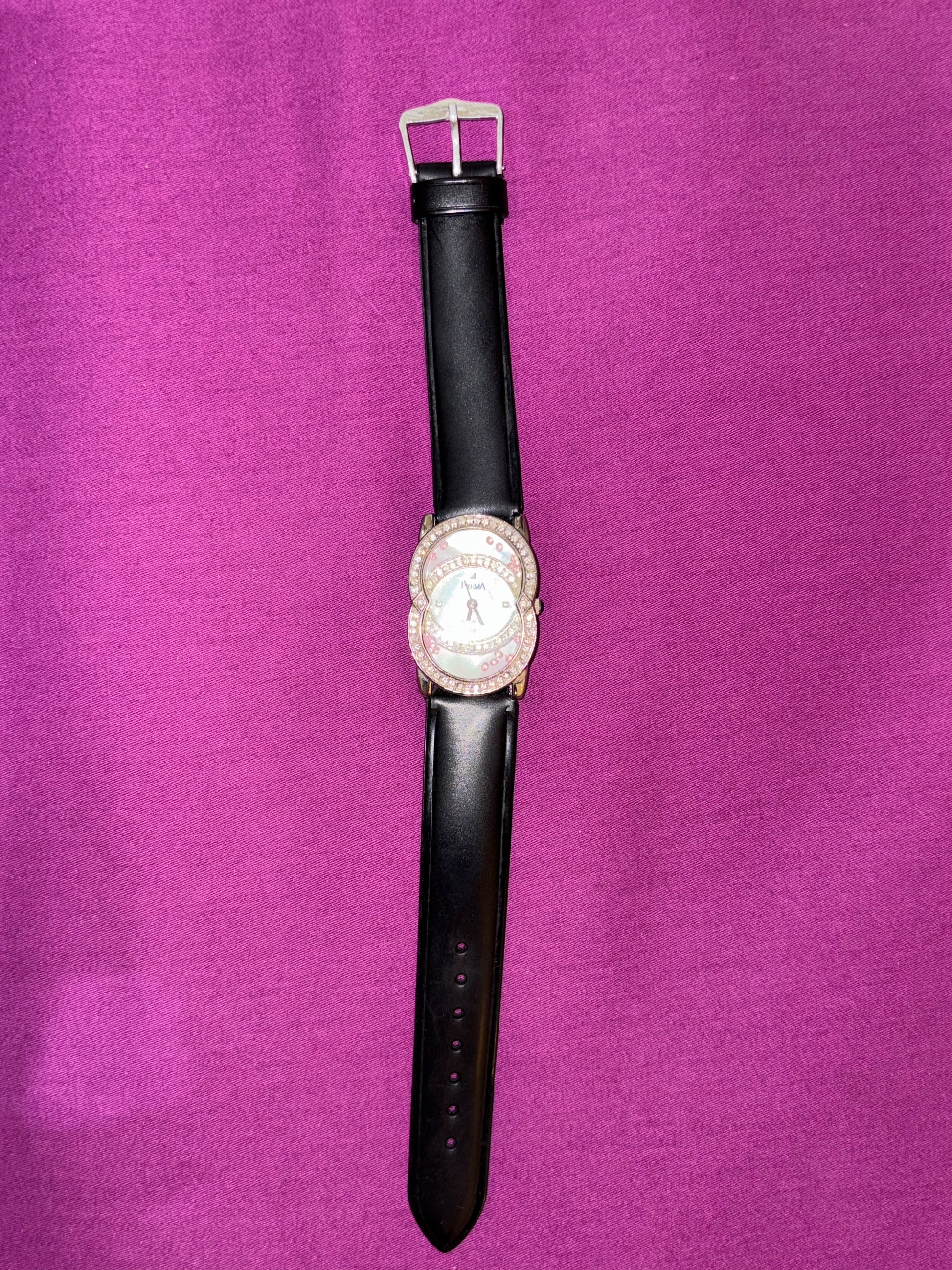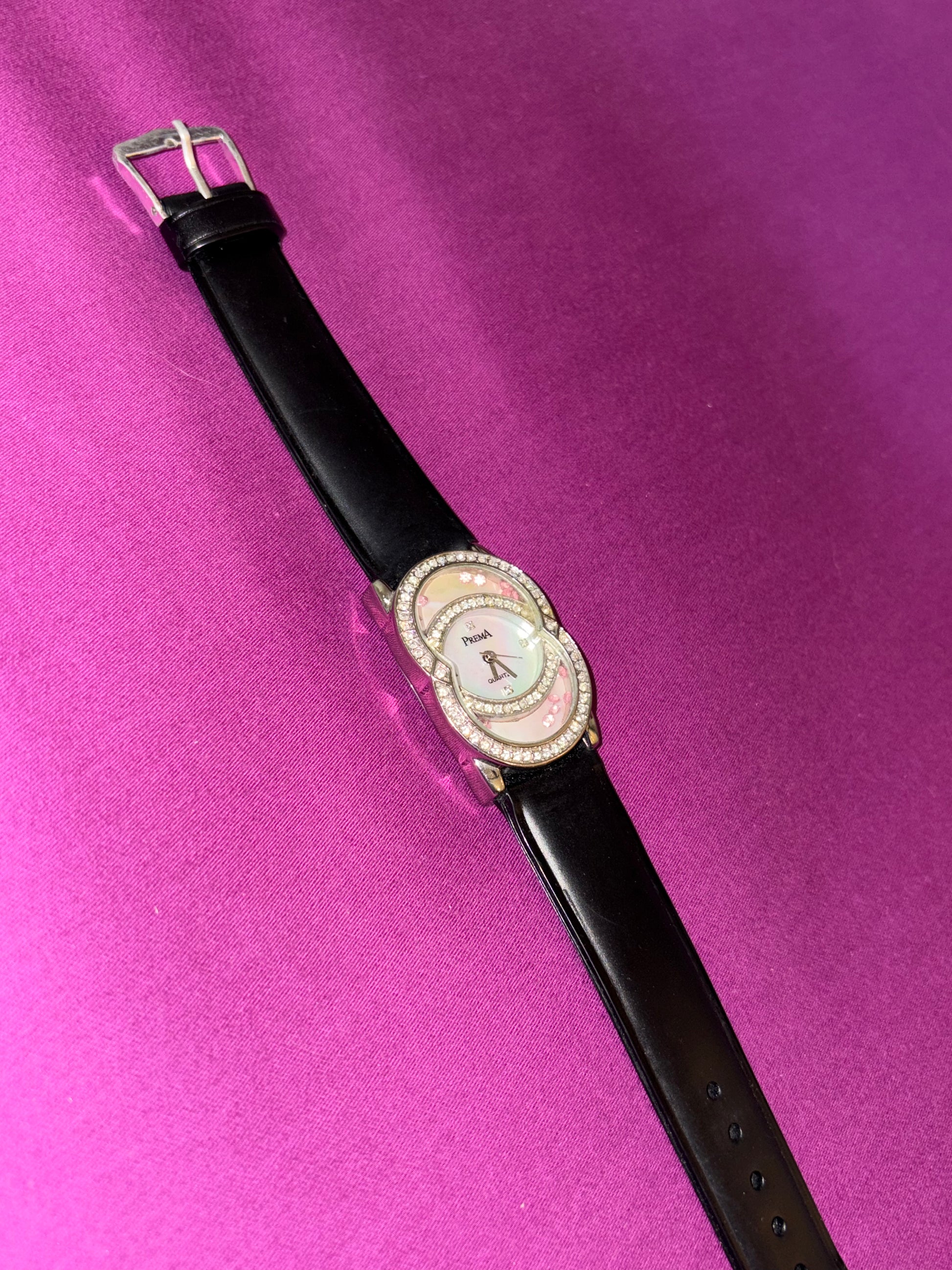 Black leather watch with studded dial