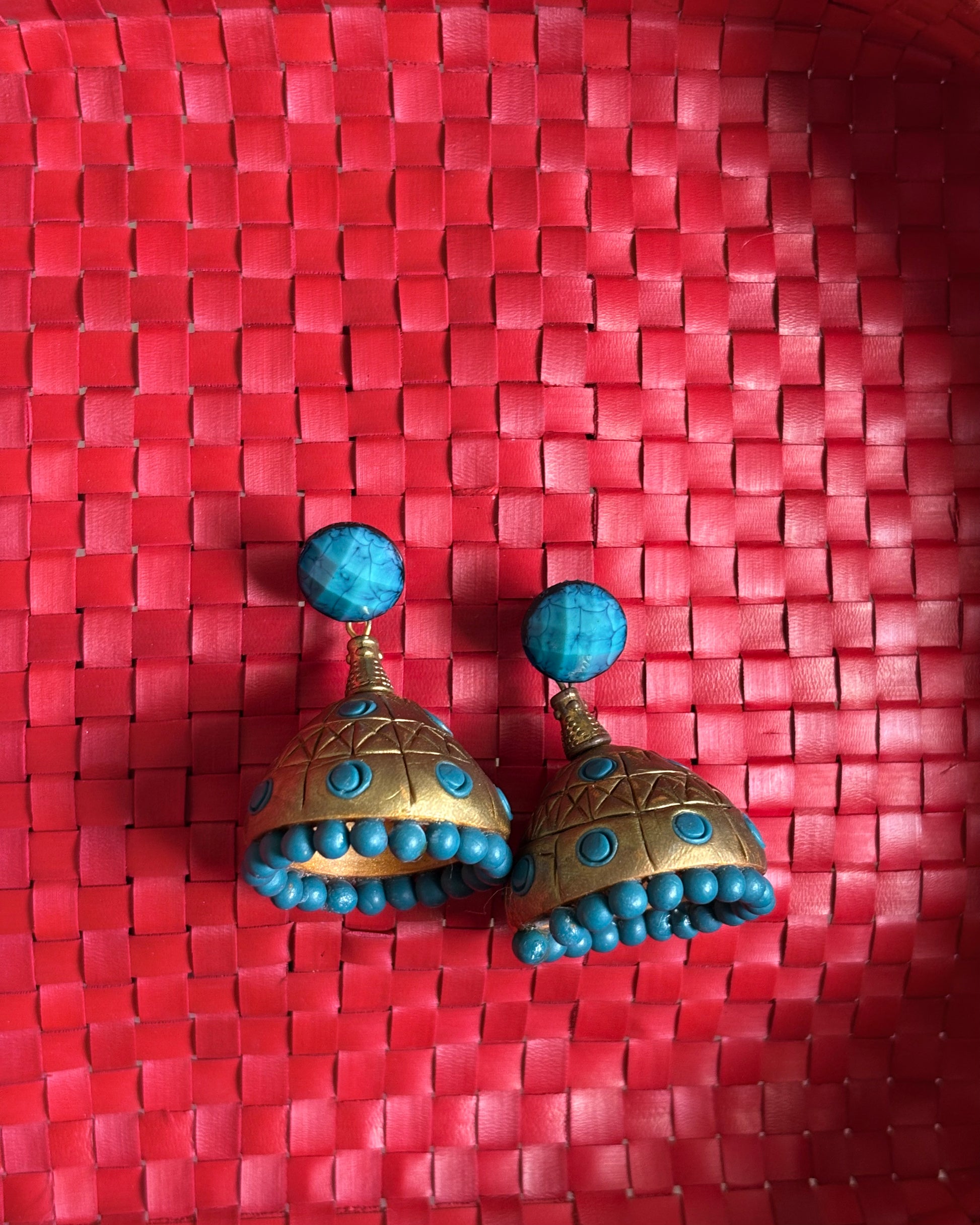 Blue and gold terracotta jhumkas