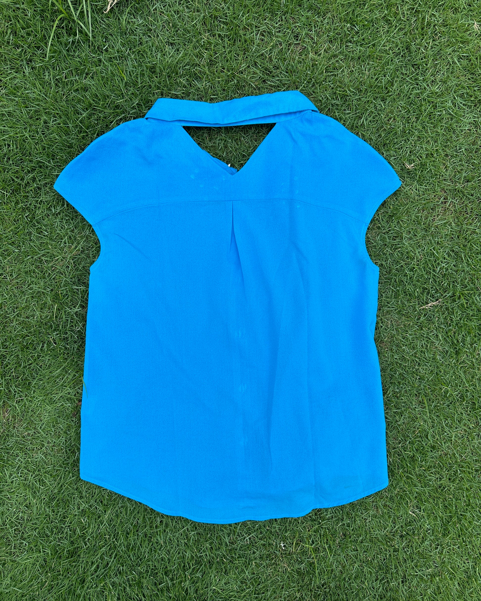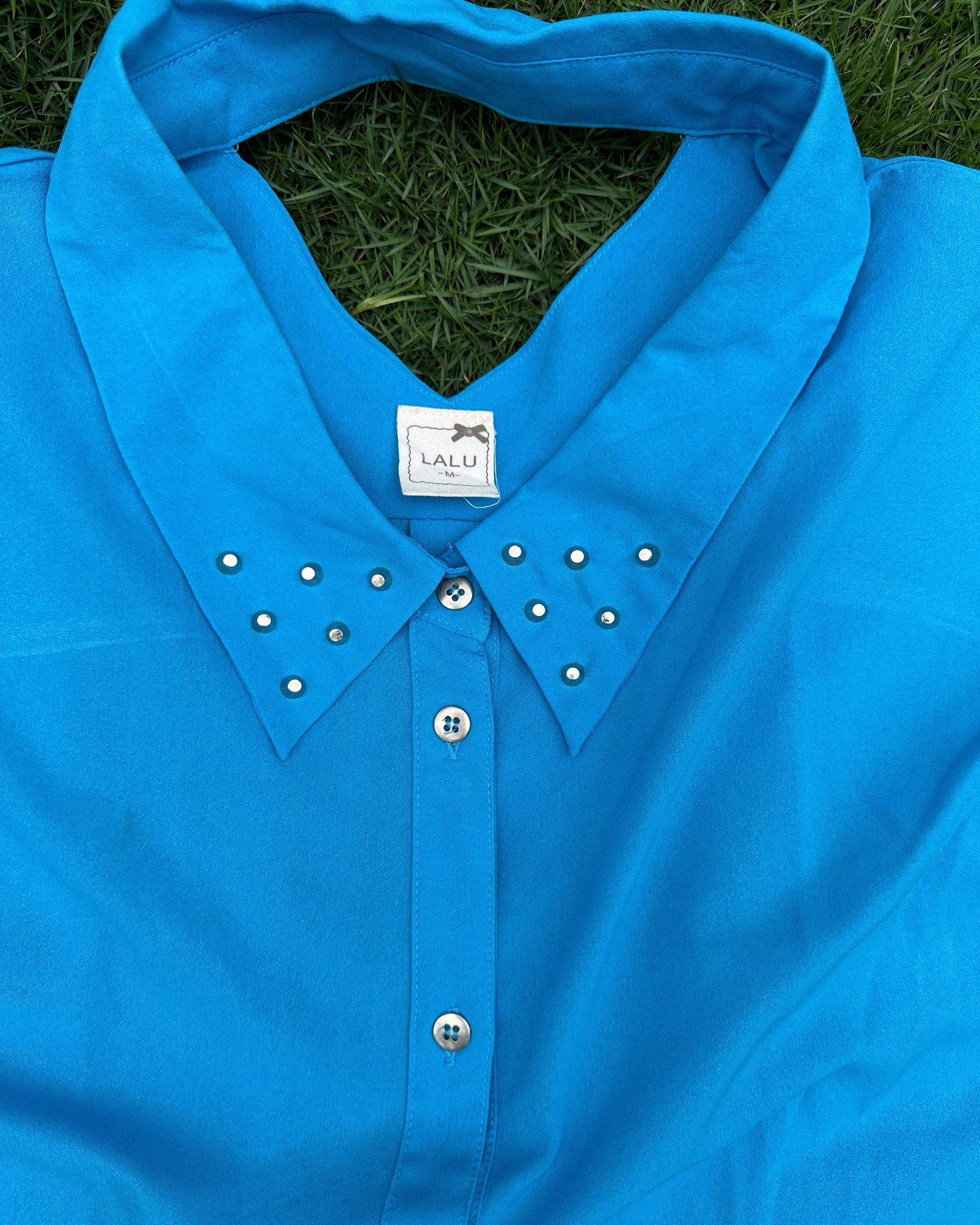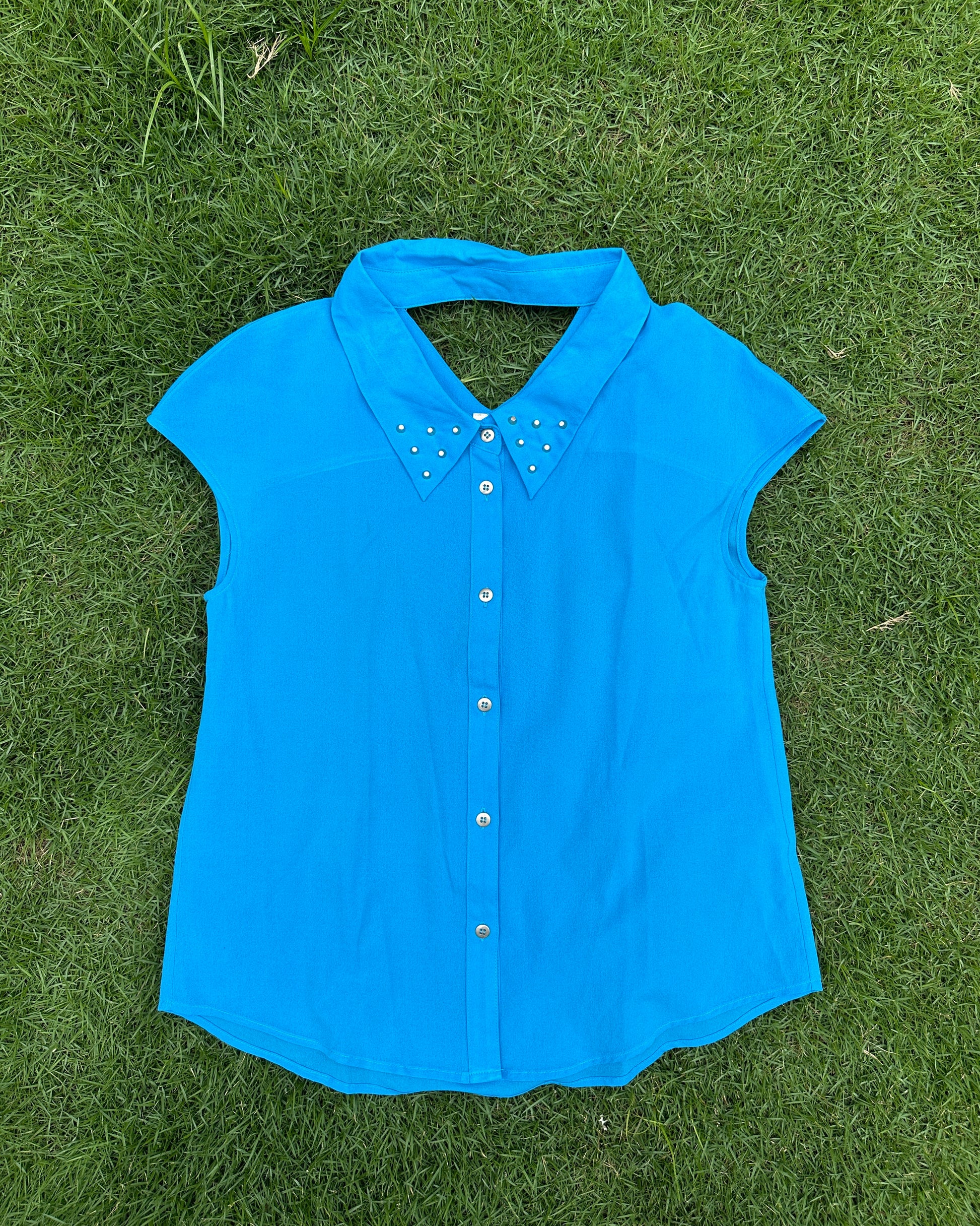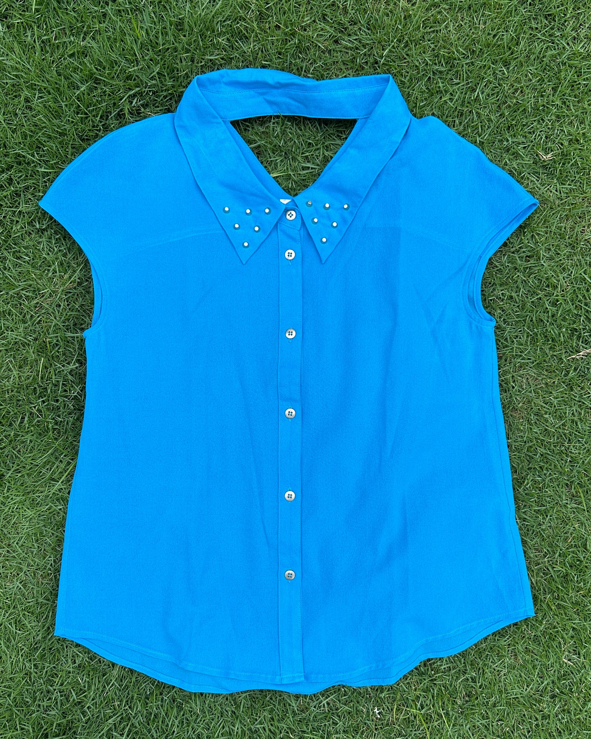 Blue collared top with metal studs