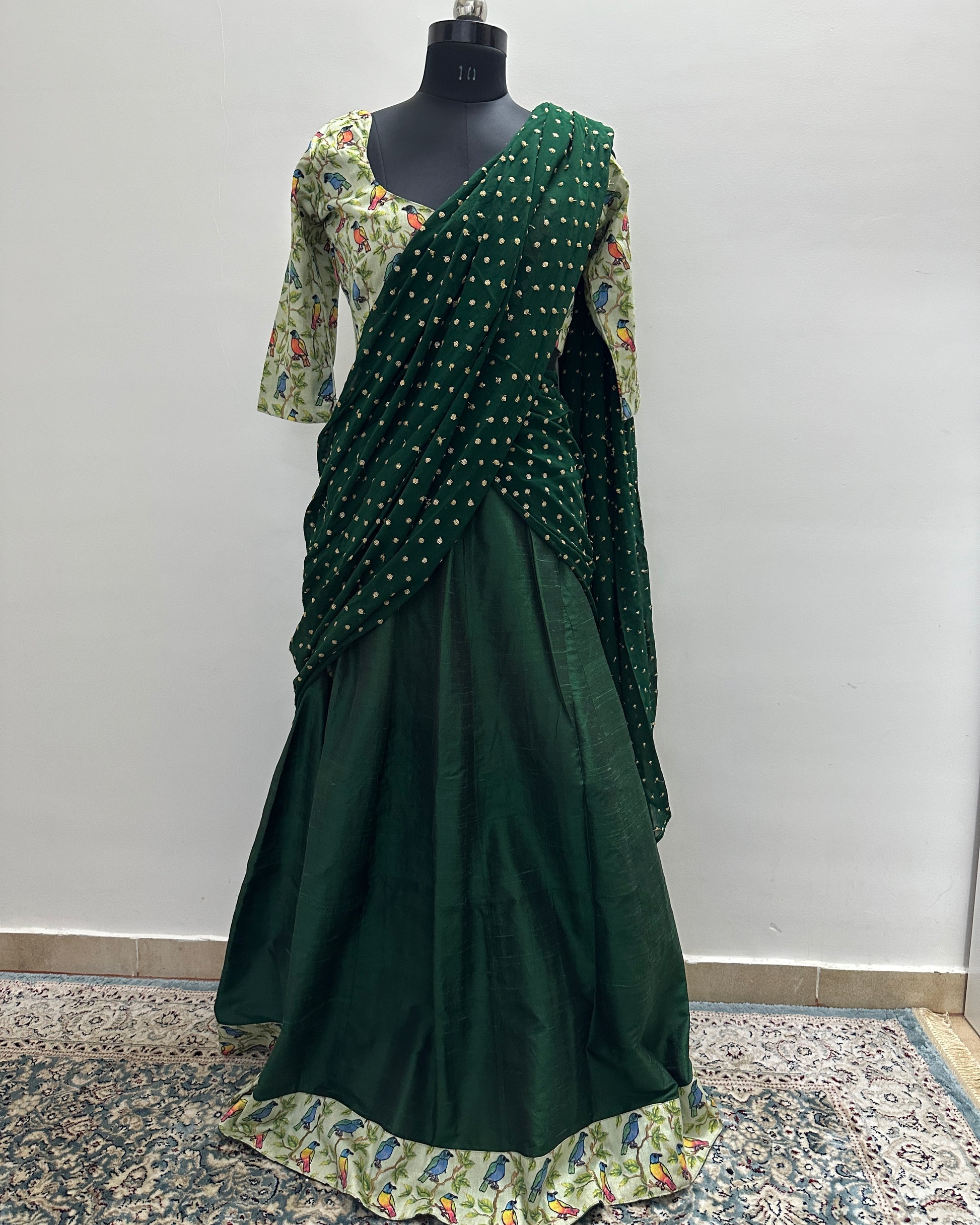 Dark green langa voni set (3 pcs)