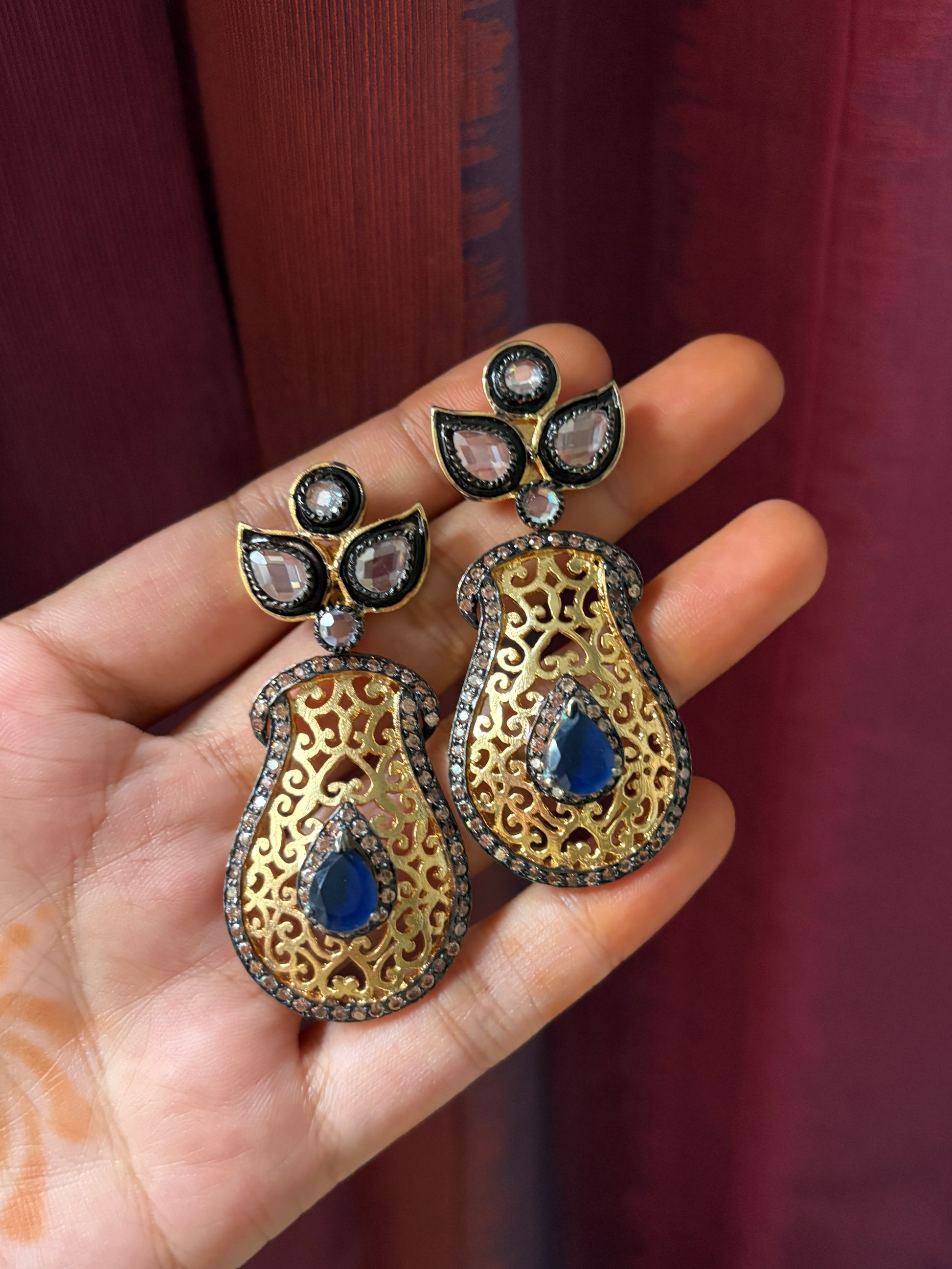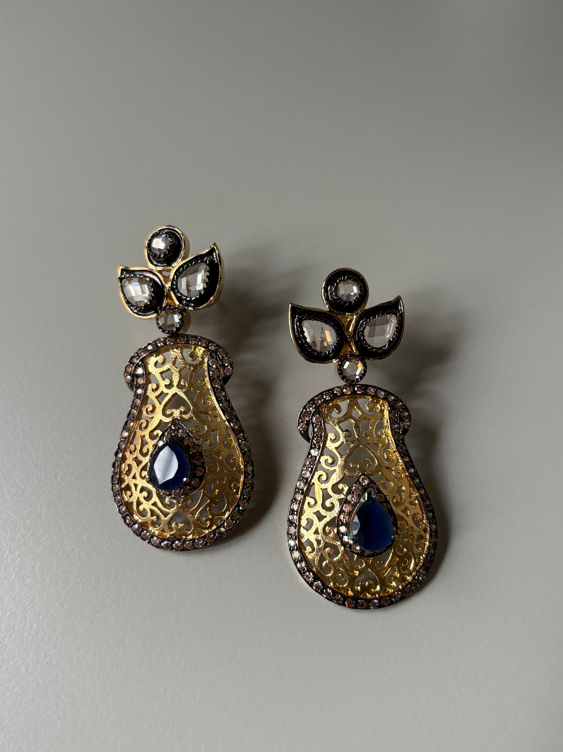 Royal filigree earring with blue stones